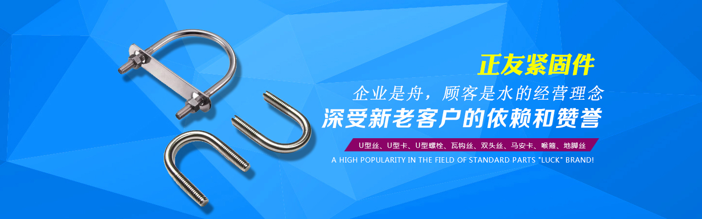 河北正友緊固件制造有限公司(原永年縣河北鋪天緣緊固件廠)坐落在永年縣河北鋪工業(yè)區(qū),地理位置優(yōu)越,交通便利。自1994年建廠至今,在各界人士的關(guān)懷和新老客戶的擁護(hù)及全廠員工的努力下,企業(yè)日益發(fā)展壯大,產(chǎn)品不斷更新,以U型絲、U型卡、U型螺栓、瓦鉤絲、雙頭絲、馬安卡、喉箍、地腳絲等產(chǎn)品的過硬質(zhì)量,創(chuàng)下在標(biāo)準(zhǔn)件領(lǐng)域知名度較高的“正友”品牌! 為答謝新老客戶長期以來對(duì)我廠的幫助與信任,我廠在提高質(zhì)量的同時(shí),更是加強(qiáng)了產(chǎn)品售后服務(wù)的力度!以“企業(yè)是舟,顧客是水”的經(jīng)營理念,鑄就“正友”日后的輝煌之路!